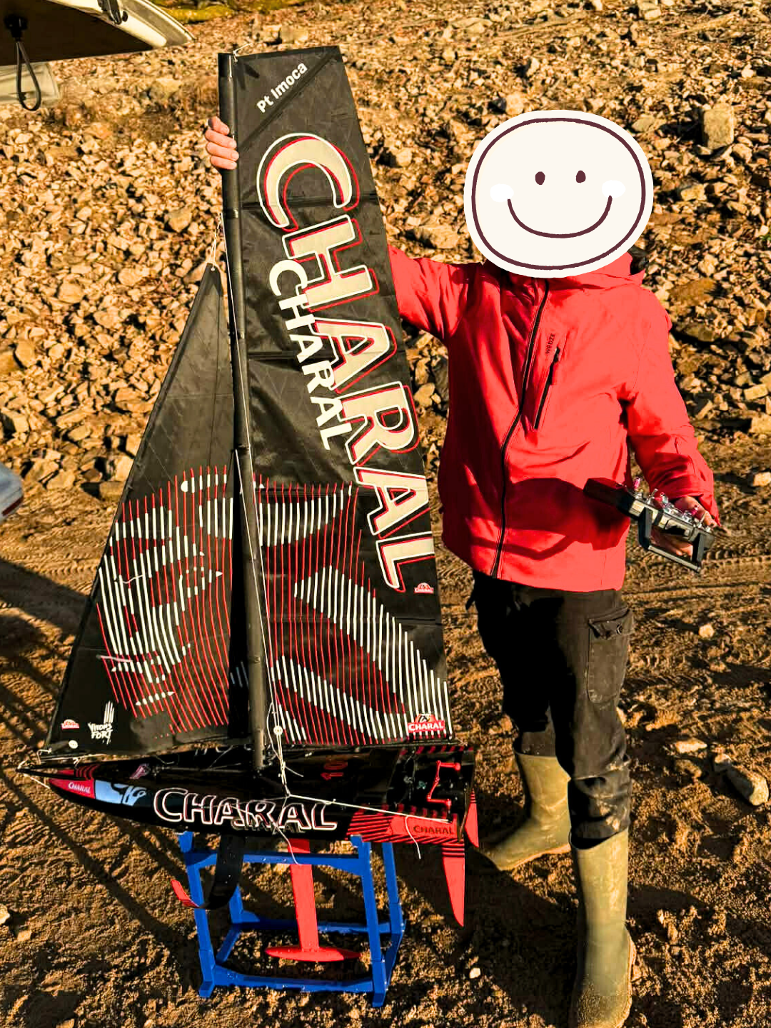 ⛵️ Petit frère des véritables IMOCA, le Pt'Imoca est une version télécommandée miniature de 84 cm de long (coque hors tout), inspirée des lignes du voilier Biotherm de Paul Meilhat. Dessiné par Romain PIques qui en a conçu les plans 3D, il est doté d'une quille pendulaire, de foils rétractables synchronisés avec la quille, d'un mât aile fonctionnel.